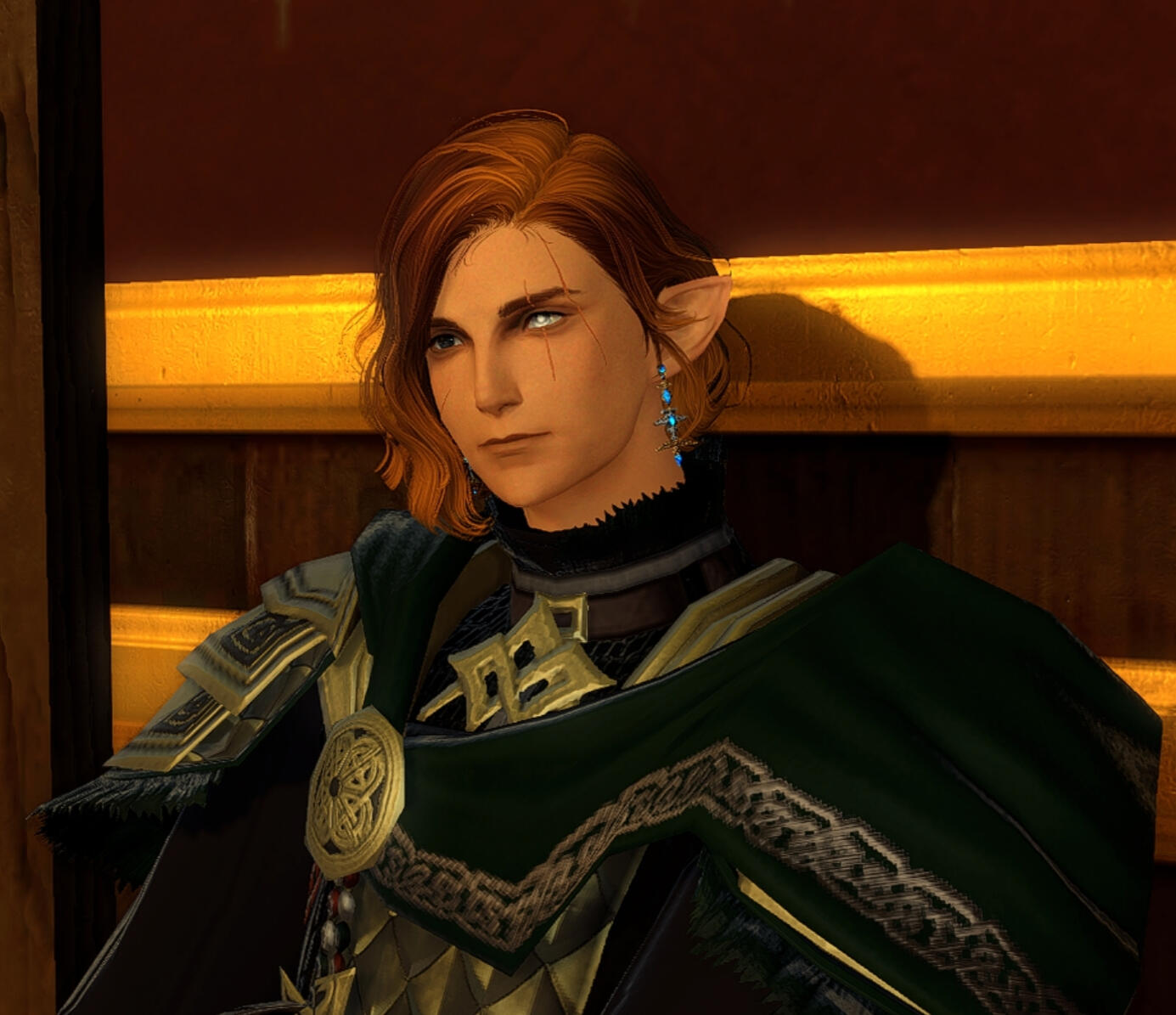 As a child, he was wild and mischievous, always wanting to play the hero. As an adult, he's strong and proud, always wanting to protect.Estienne, who prefers going by Symmonet to avoid being confused with his boss the Azure Dragoon, comes from a long line of proud knights and dragon slayers that started with a bastard son of House Dzmael. And over the course of a century, his family has certainly earned the respect in society to match such a heritage. Having been raised on stories of Halonic heroism and glory since he was a child, Symmonet has long been incredibly proud of his martial skills and his service to Ishgard. Amongst the many lessons that he learned from a young age, he was always taught that dying in the war against dragonkind was the most noble thing he could do and he was always prepared for the possibility of his death.Everything changed, however, when he made a mistake that saw his left eye lost to a dragon's spikes that tore straight through his helmet. The pain and shock threw him clean out of the sky, leaving him half-blind and badly injured. While he was recovering and adjusting to his new vision, the Dragonsong War came to an end and his services as a dragoon were no longer needed.In his shock and anger, he fell into a deep depression that spiraled into a full-blown crisis of faith and a lack of self as he saw his entire life's purpose ripped out from under him, the sacrifices of his himself and his kin rendered worthless. They had fought all this time to kill dragon and Dravanian alike, why were those same enemies being invited to break bread at their tables now? What the hell kind of peace even was this?Since then, he's found a position as a knight of the formerly agricultural House Chastelaine and works to find other ways to serve Ishgard and the people in it. All the while, he's still stumbling around and trying to find his footing and his purpose once more in strange new reality he's found himself in.