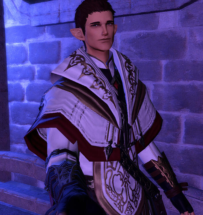 The unfortunate reality of post-war Ishgard is that tension is in the air and it isn't going anywhere. He's had to break up more than a few fights and block a few thrown objects while he's out and about in the city. Maybe you've run across each other during one of these altercations?